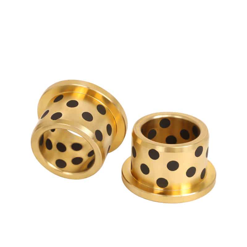Graphite Manganese Bronze bushing, also known as brass graphite bearing, is a special material self-lubricating bearing, according to different uses and working conditions, choose different copper graphite bearings. One of the major categories of solid inlaid copper graphite bearings (JDB for short) is a novel lubricating bearing with both the characteristics of metal bearings and oil-free lubricating bearings. The metal matrix bears the load, and the solid lubricating material with special formula plays the role of lubrication. It has the characteristics of high bearing capacity, impact resistance, high-temperature resistance, strong self-lubrication ability, especially suitable for heavy load, low speed, reciprocating or swing, and other difficult lubrication and oil film formation occasions, also not afraid of water and other acid erosion and scouring. At present, the products have been widely used in a metallurgical continuous casting machines, rolling equipment, mining machinery, ships, steam turbines, water turbines, injection molding machines,s and equipment production lines.