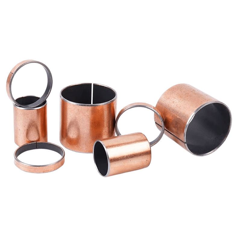 Our bronze-backed PTFE line bearing bushing series PTFE lined clad bearings are suitable for dry running, low friction, low wear applications. These clad bearings have excellent sliding characteristics and form a transfer film that protects the mating metal surfaces.