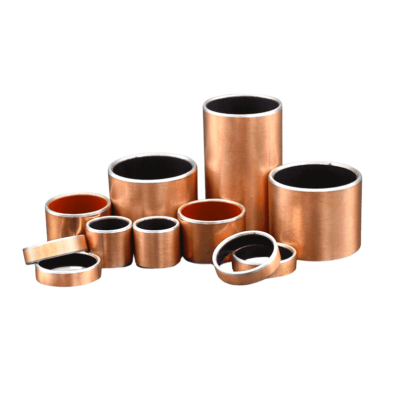 A PTFE bushing, also known as a plain bearing, dry bearing, or PTFE bushing, is a type of self-lubricating bearing. It is made from a composite material that typically consists of a metal backing bonded to a layer of PTFE-based (Polytetrafluoroethylene) material. Here are its key characteristics: