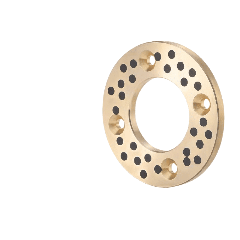 The solid self-lubricating bearing uses centrifugal casting high-strength brass alloy as a matrix, which plays a role in the load. The special formula of graphite with good self-lubricating performance is used as a lubricant, playing a role in self-lubricating, which combines their respective advantages, Even under high load and low-speed conditions, it can exert superior performance.
